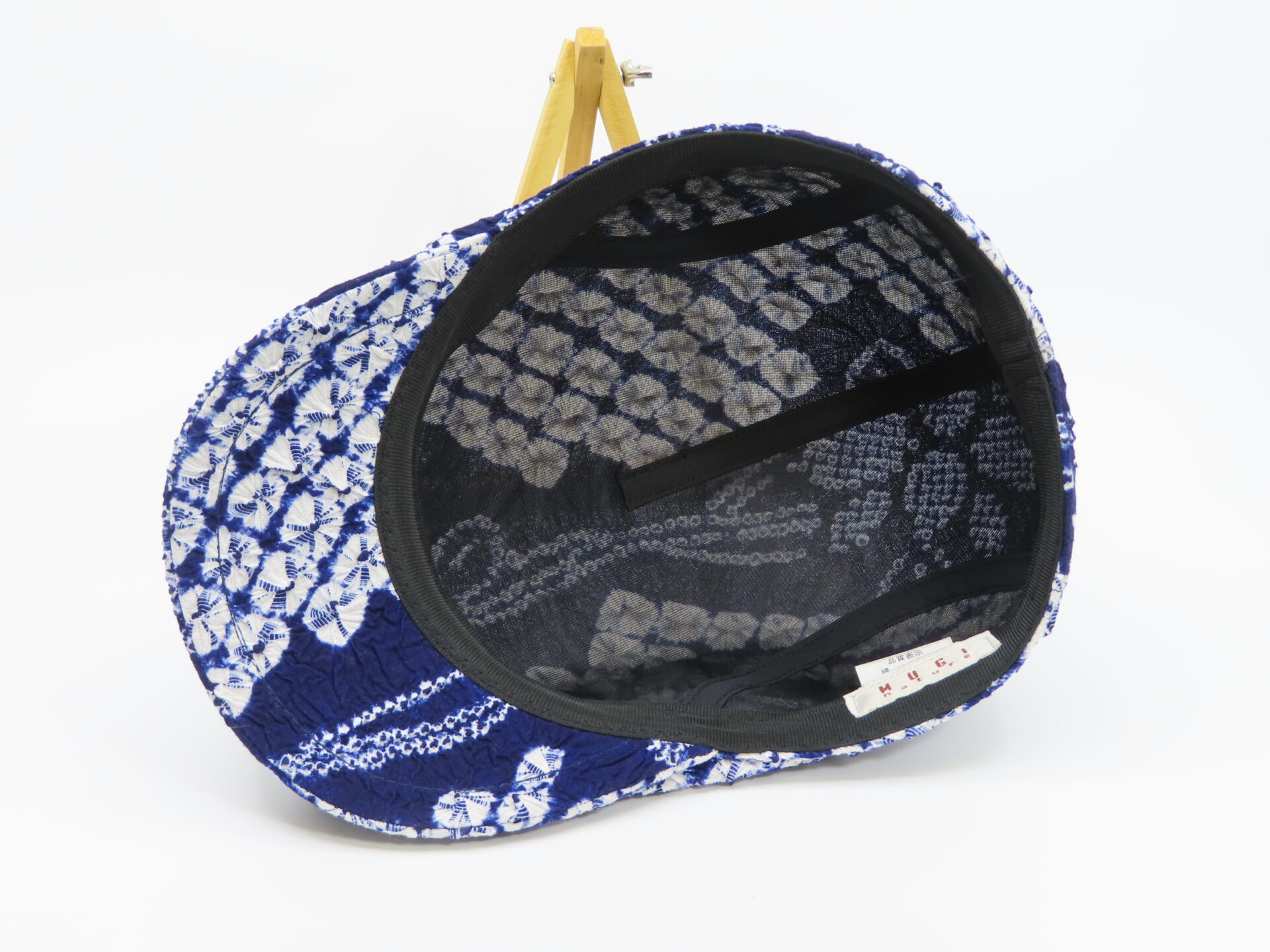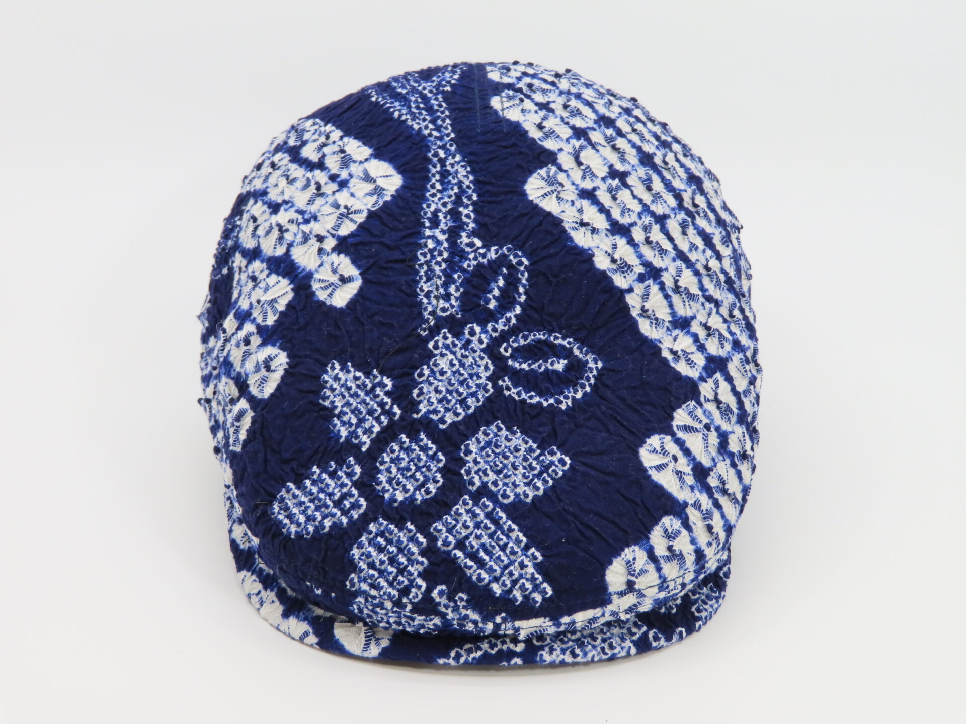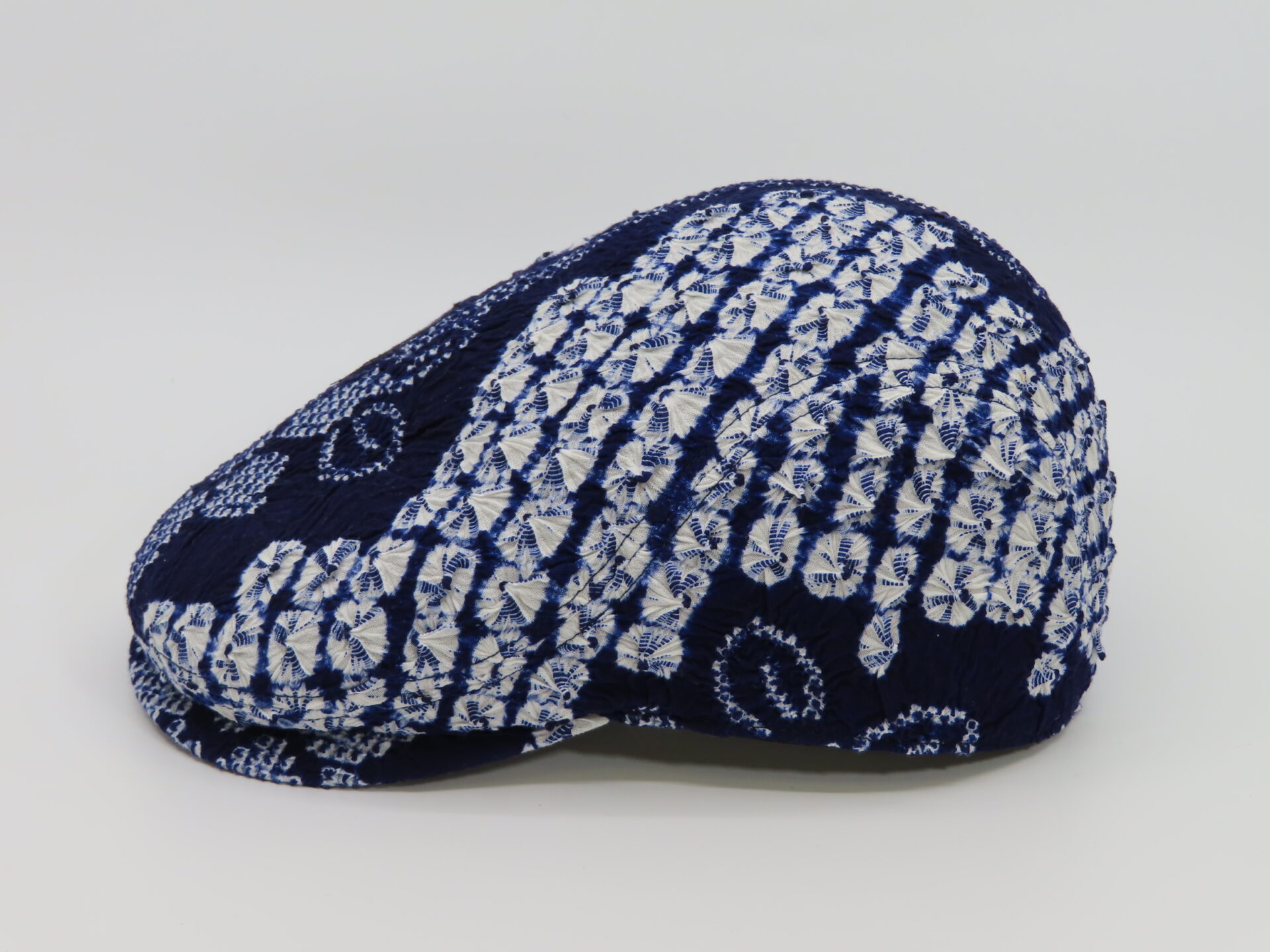 をせずに、出来る限り、絞り地の風合いを残して帽子に仕上げた逸品です。