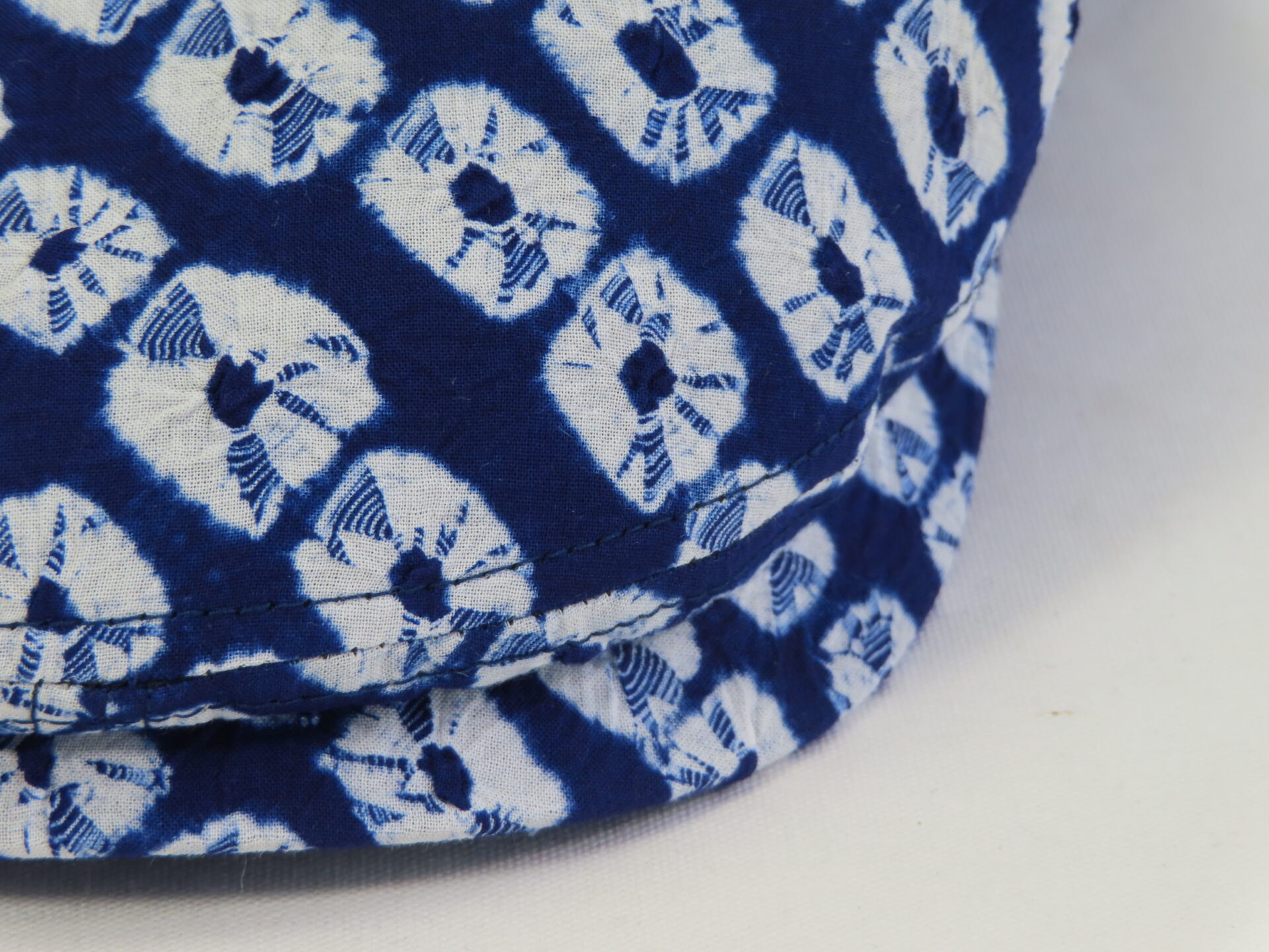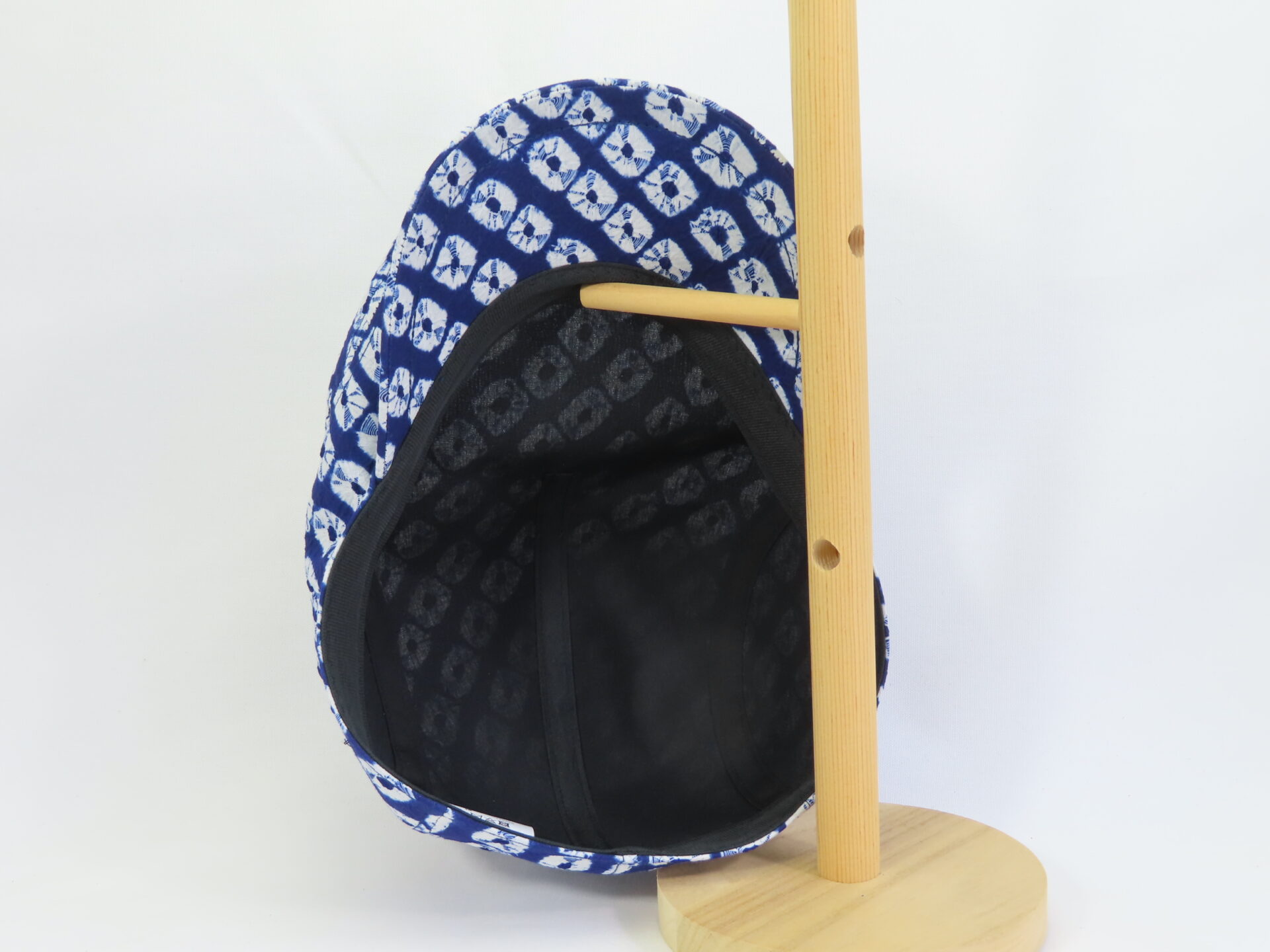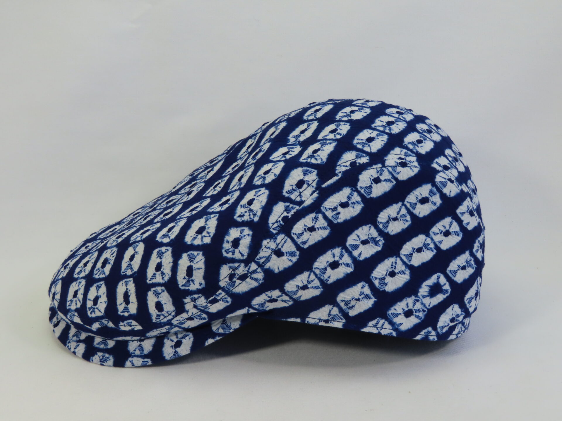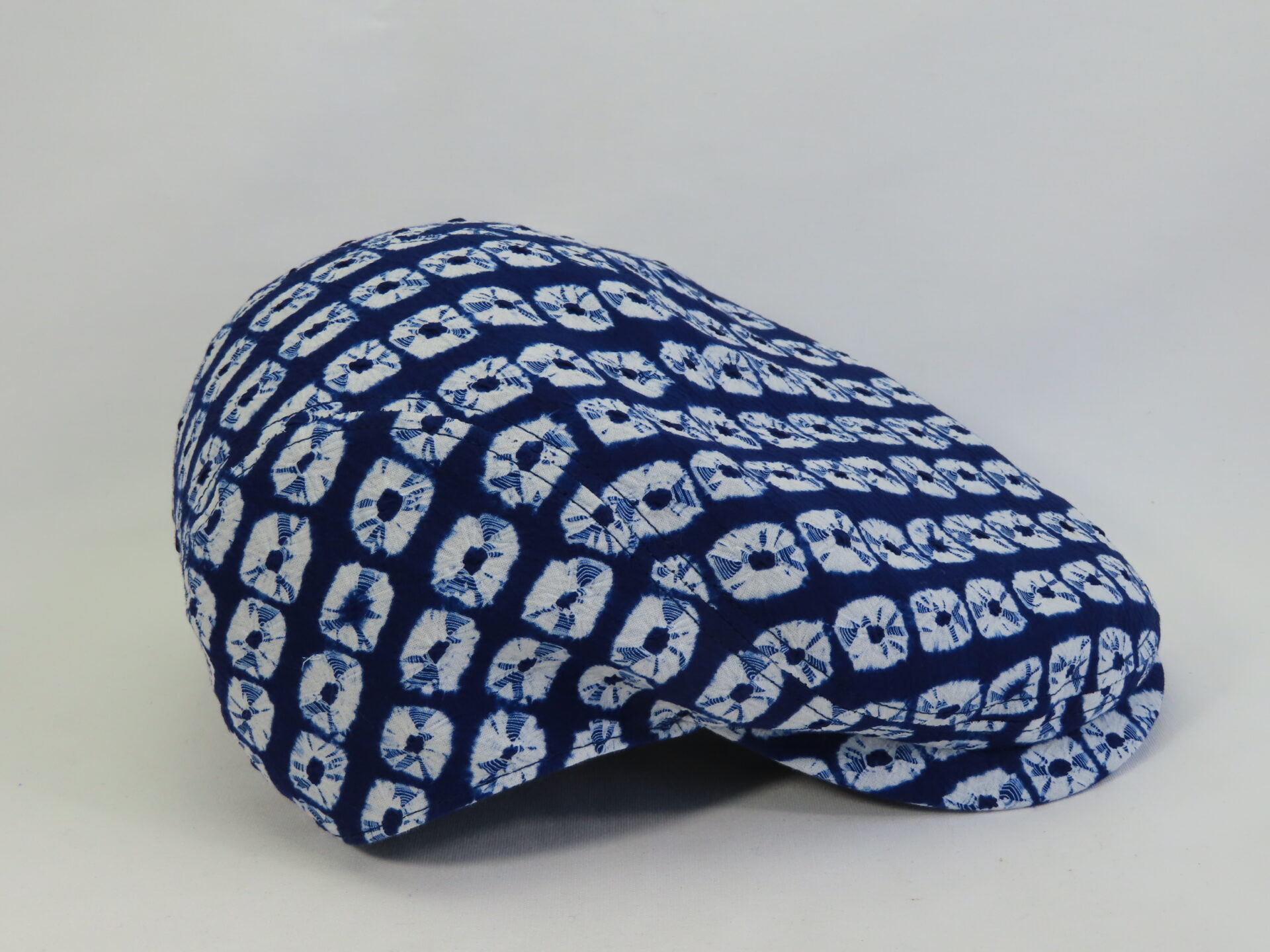 有松絞りで代表的な技法の1つで江戸時代初期から伝わる絞り染めである蜘蛛絞り柄をハンチング帽子