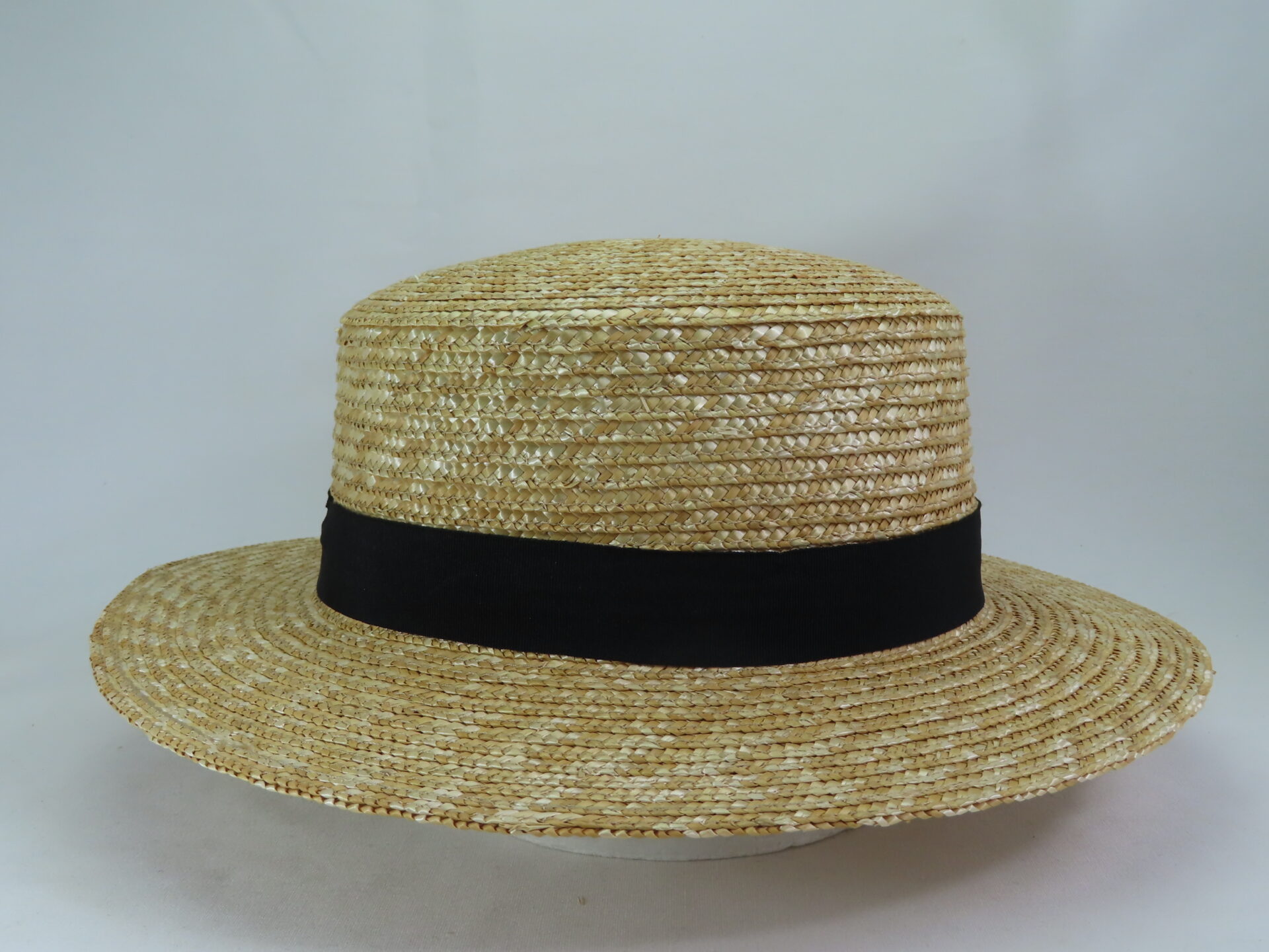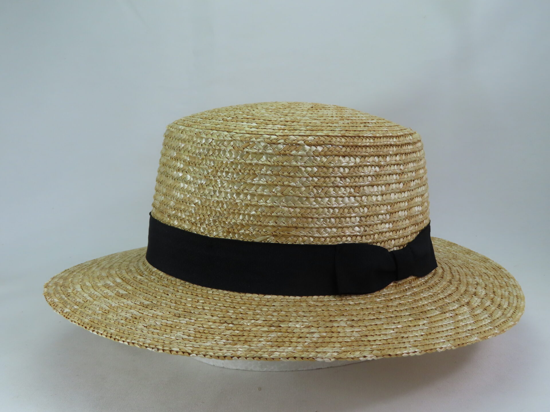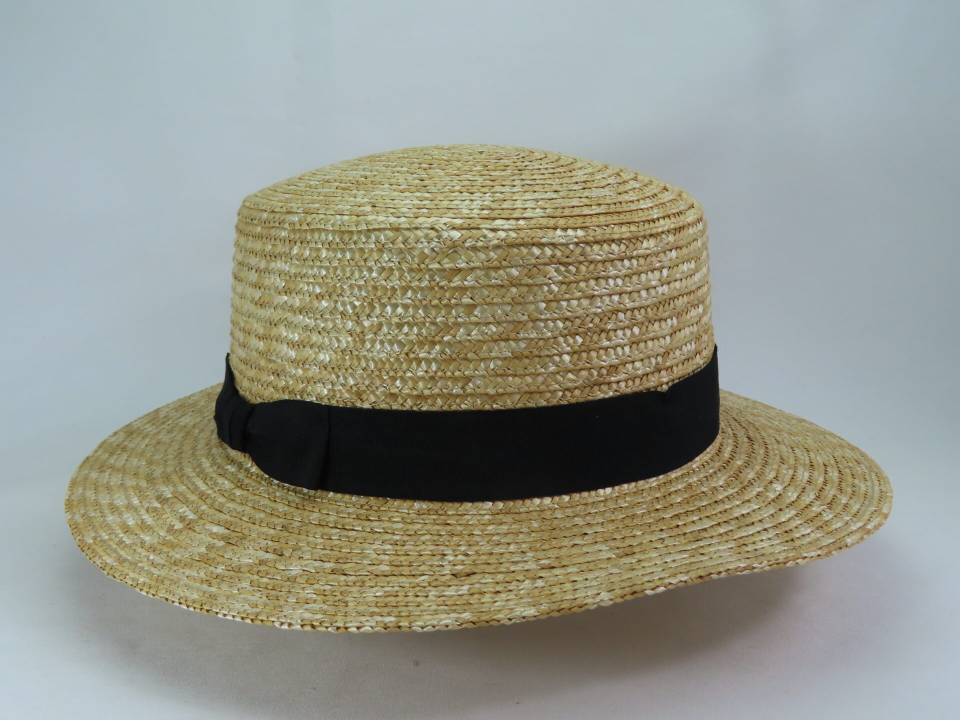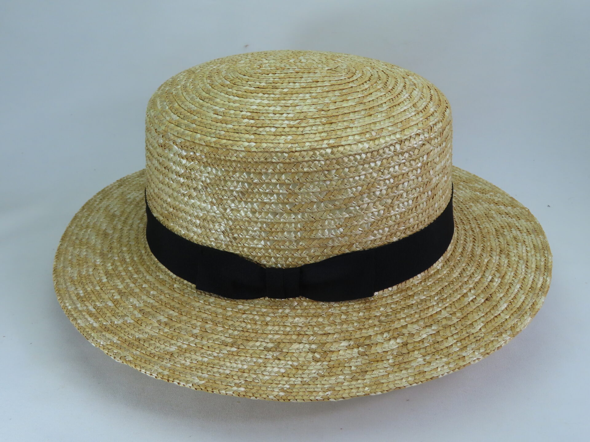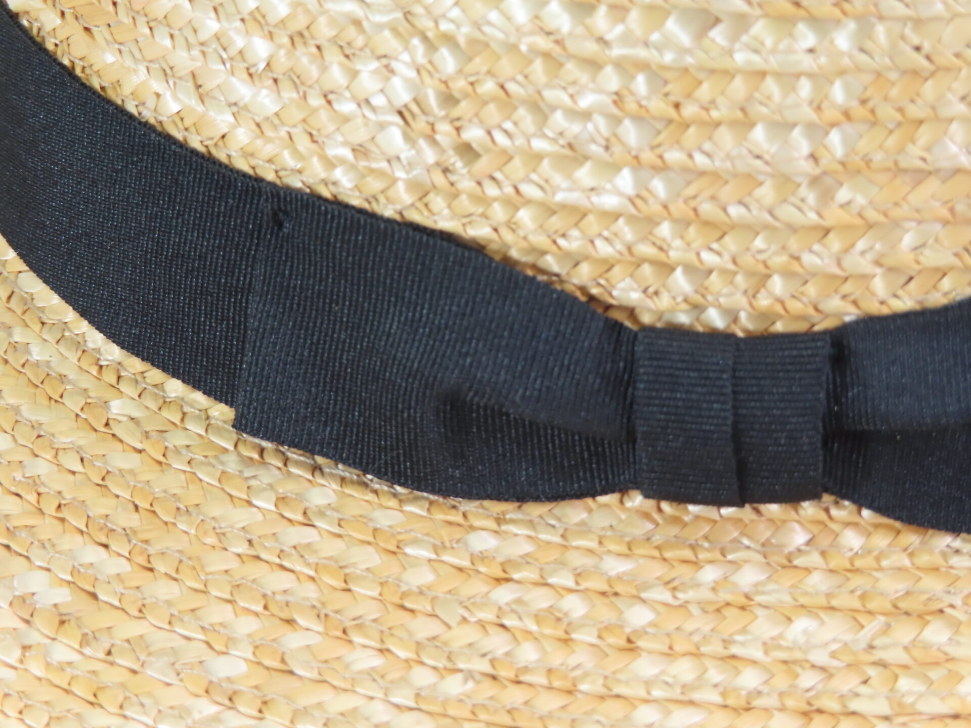 30㎜のグログラン黒リボン巻いているので、どんな装いにも合うことができます。
